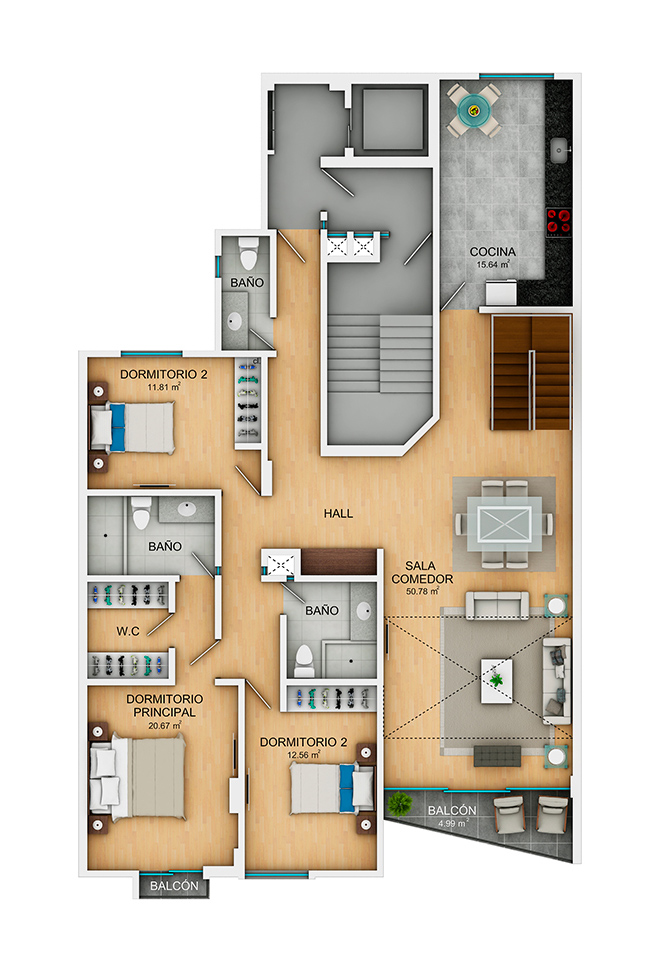 El proyecto consta de 11 exclusivos departamentos, 5 duplex y 6 flats que van desde los 152 m2 hasta los 303 m2.