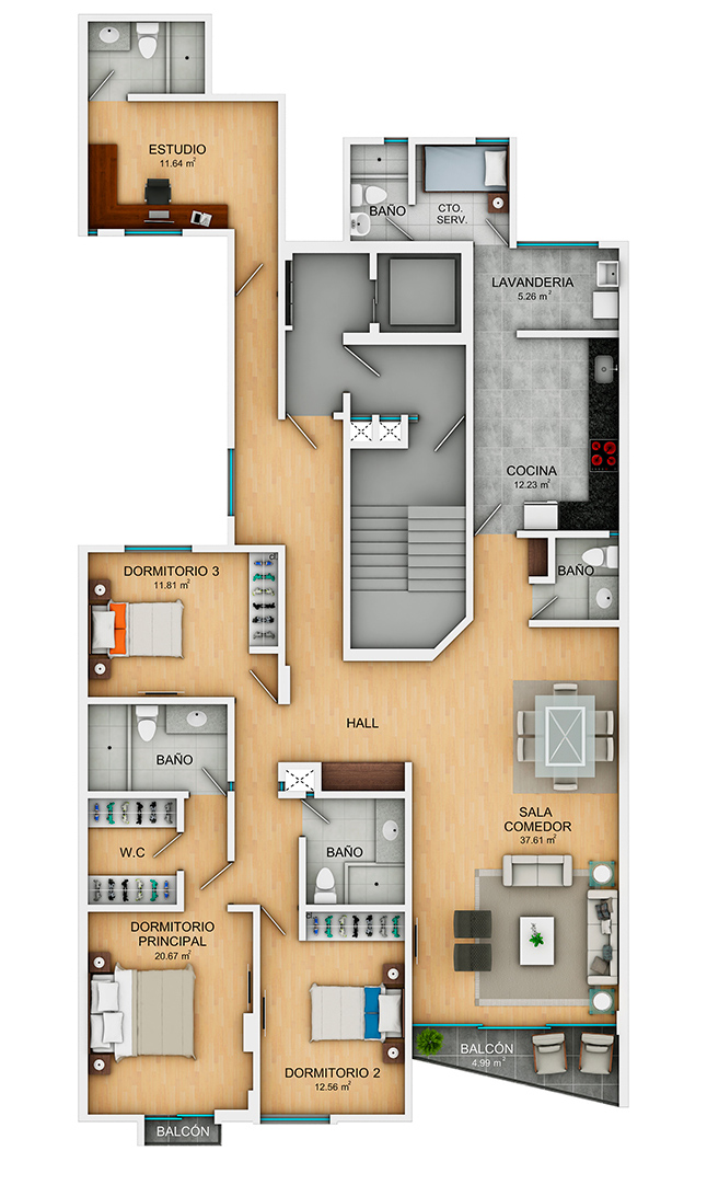 • Walking closet en todos los dormitorios principales