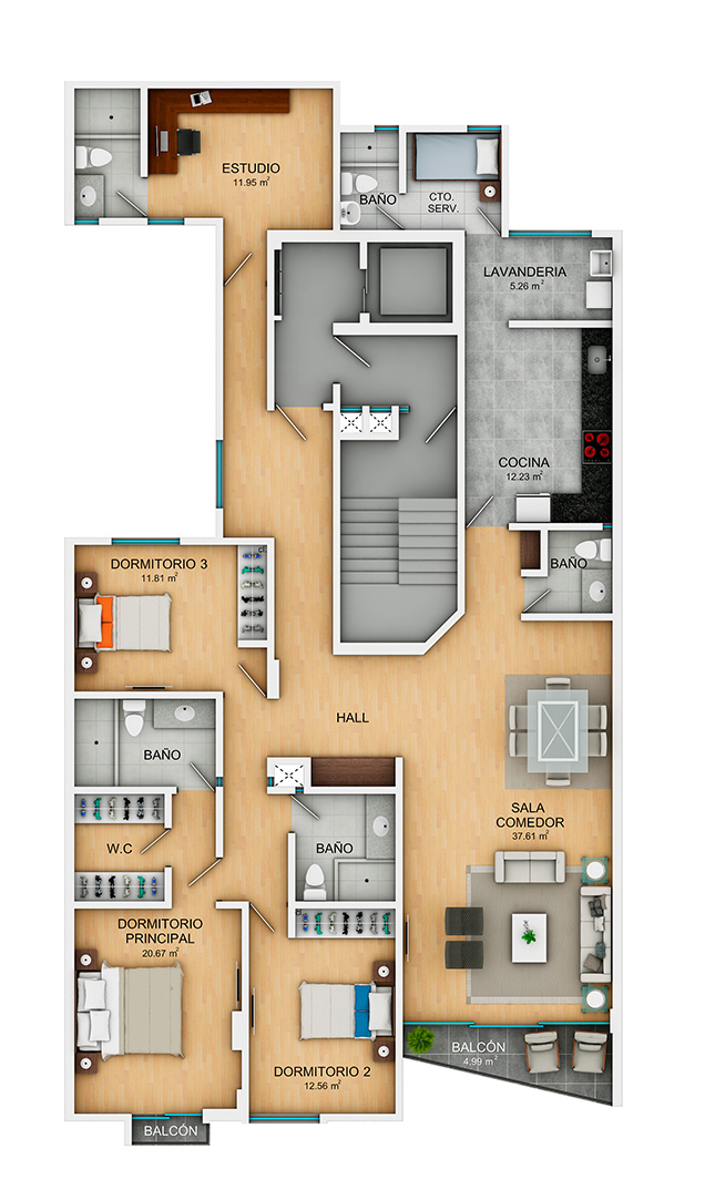 Dale una mirada a los planos de cada departamento.