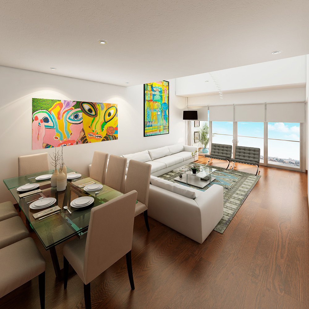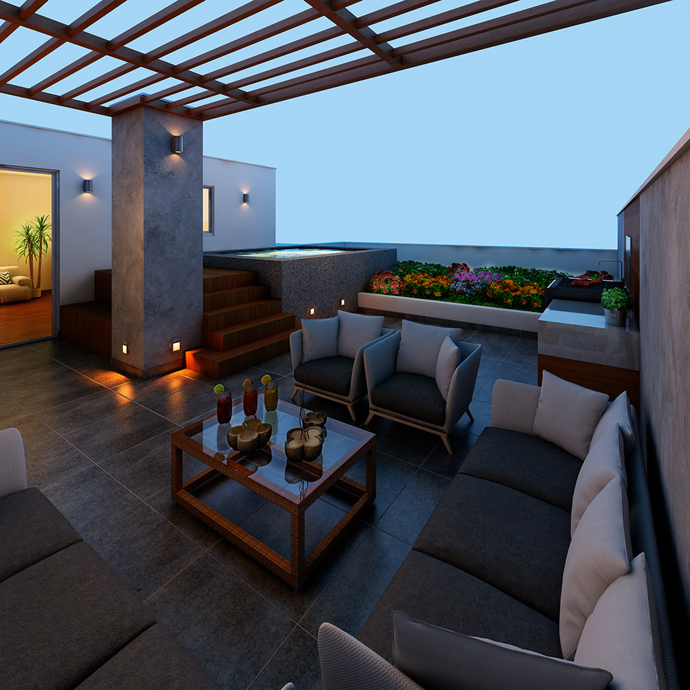• Penthouse dúplex de 202.3 m2 de área ocupada y 142 m2 de área techada y 2.75 ml de altura de piso a techo.